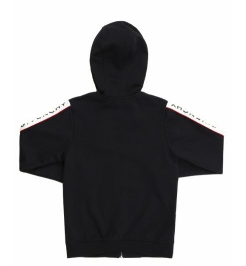 Zip-up hoodie with logo applied on the sleeves.