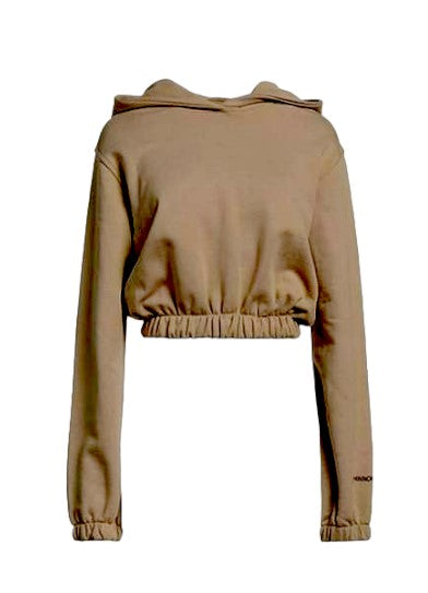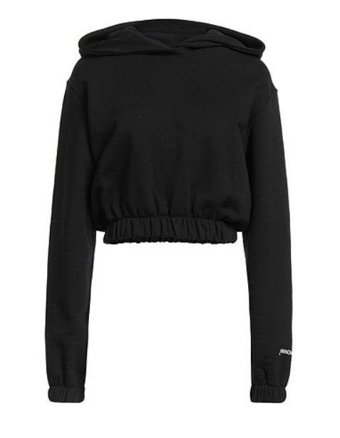 Cropped sweatshirt with long sleeve hood, elasticated waist and cuffs, logo printed on the sleeve.