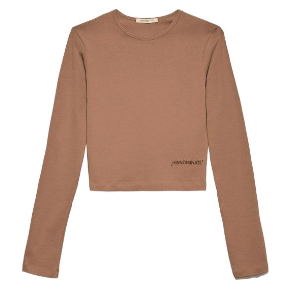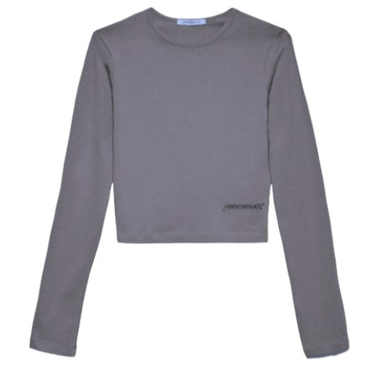 Crew neck crop T-shirt, long sleeve, printed logo.