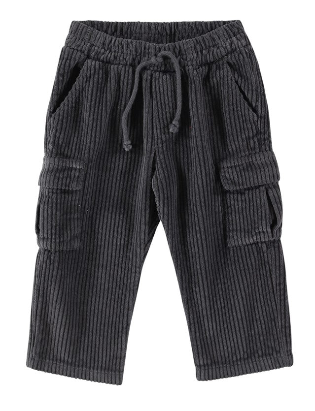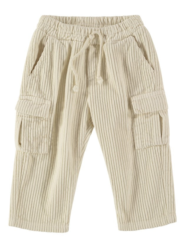 Kids corduroy cargo pants, elasticated waist with drawstring,