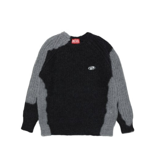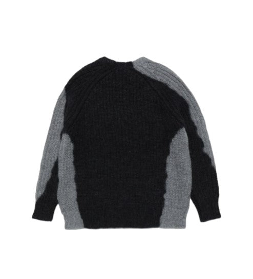 Two-tone mohair wool crew neck sweater, logo patch applied on the chest.