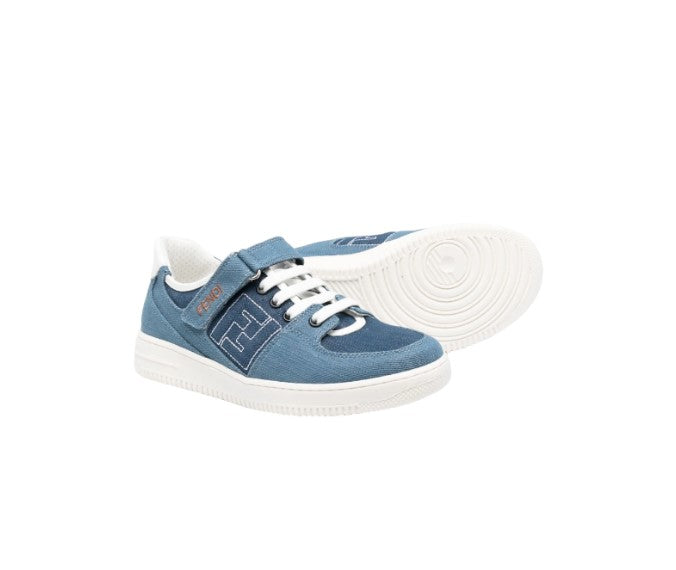 Cobalt blue, faded denim, color block insert design, embroidered logo on the side, FF logo embroidery, logo application on the tongue, contrasting stitching, round toe, lace-up front fastening, velcro front fastening, logo insole and chunky rubber sole.