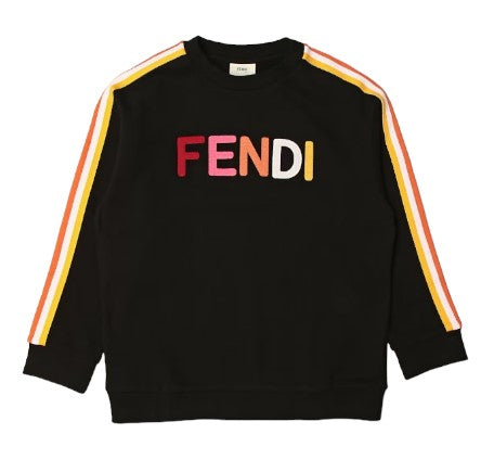 Crew neck sweatshirt, contrasting embroidered logo, contrasting stripes on the sleeves.