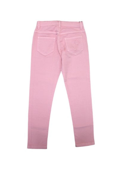 Cotton denim jeans, five-pocket model. Front closure with button and zip. Embroidered logo on the back pocket.