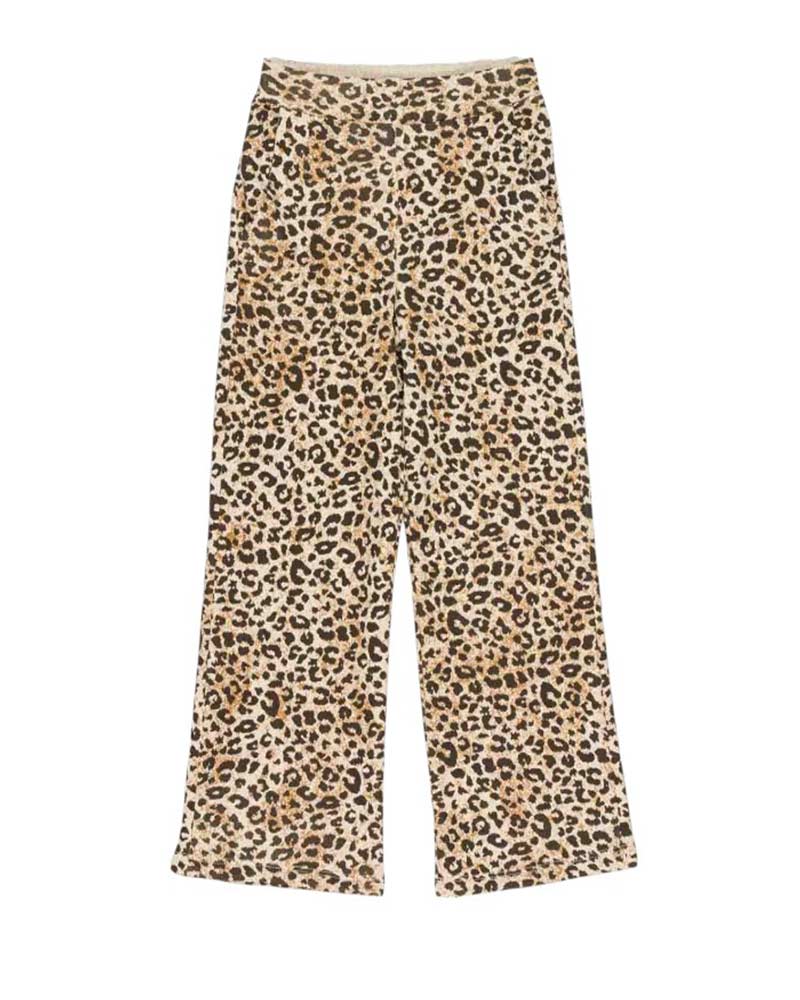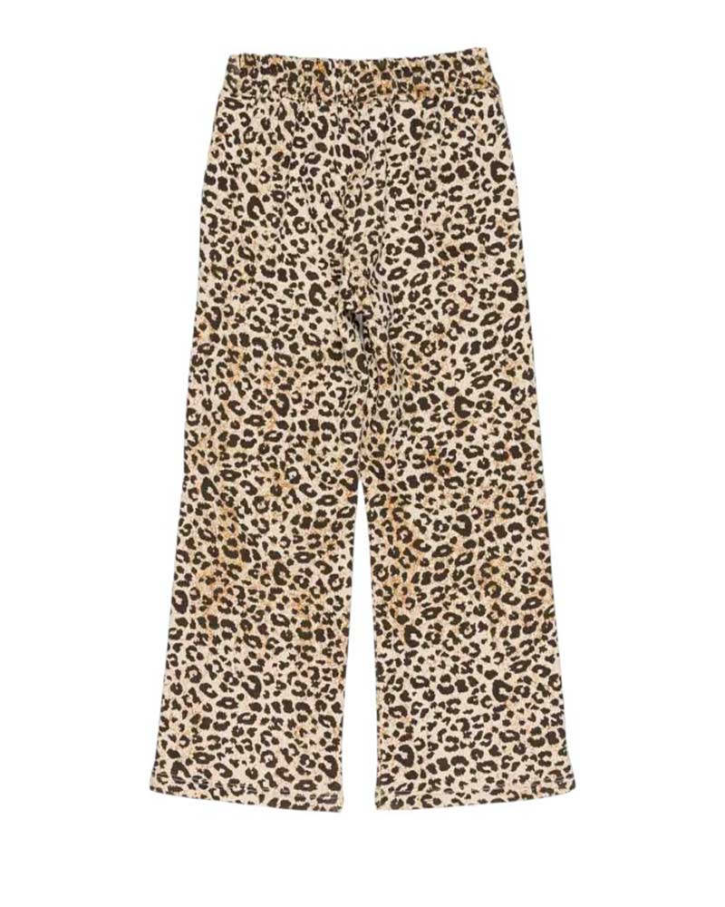 Pantaloni jogger beige realizzati in cotone garzato da bambina. Presentano fantasia animalier all-over, vita elasticizzata con coulisse, tasche laterali all'americana, fodera in pile e gamba dritta.