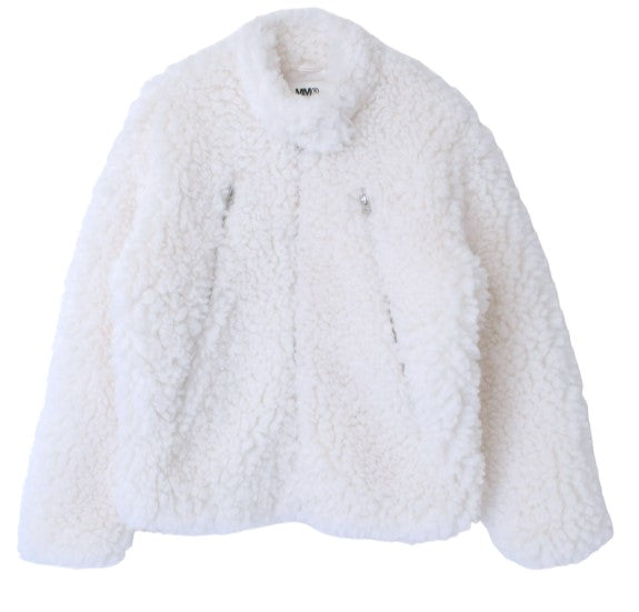 Faux fur jacket, zip fastening, embroidered logo on the back.