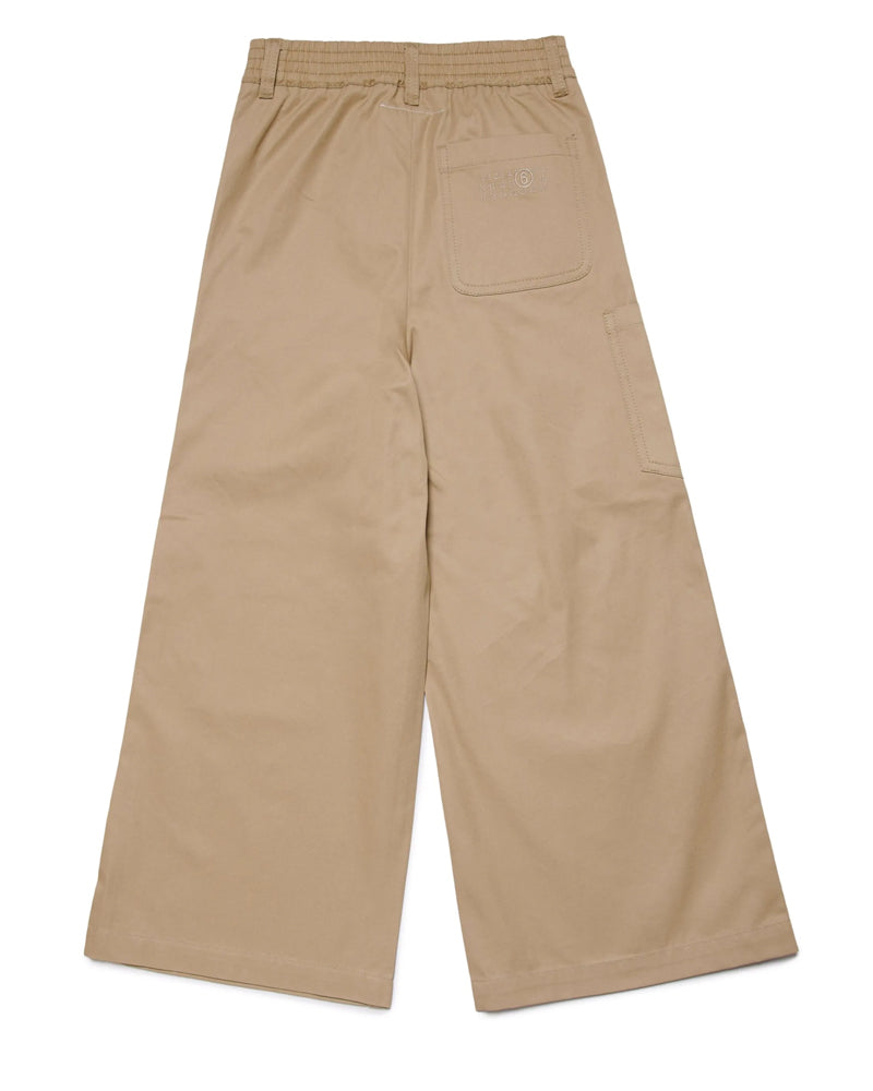 Pantaloni Chino a gamba ampia con ricamo. Modello con vita elasticizzata, passanti, tasche a soffietto ai lati e tasca posteriore applicata. Completato da logo ricamato sul retro.