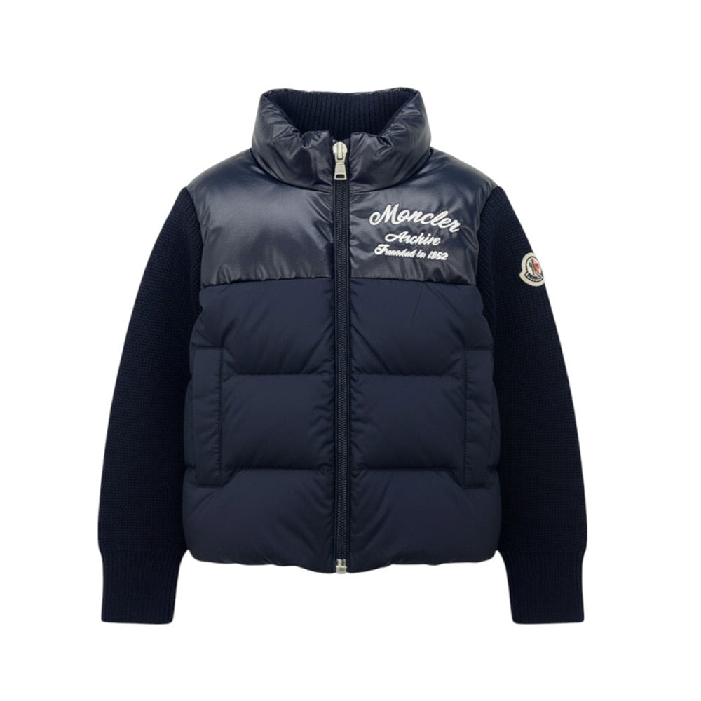 Padded baby cardigan, front zip fastening, side pockets with clips, contrasting embroidered logo on the chest, logo patch applied on the sleeve.