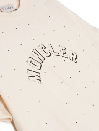 Crew neck, short sleeve cotton T-shirt, logo print on the front, crystal detail, straight hem.