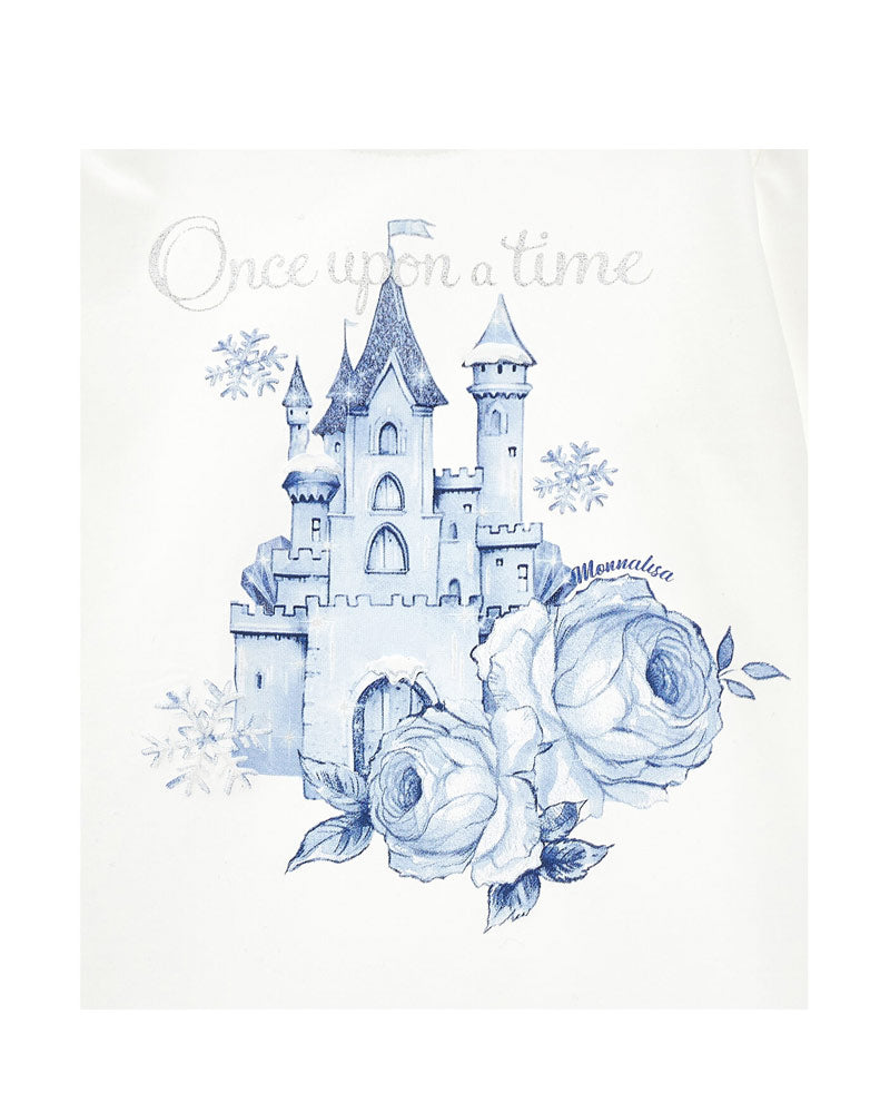 T-shirt girocollo realizzata in jersey di cotone a maniche lunghe, stampa castello con dettagli di strass sul davanti.