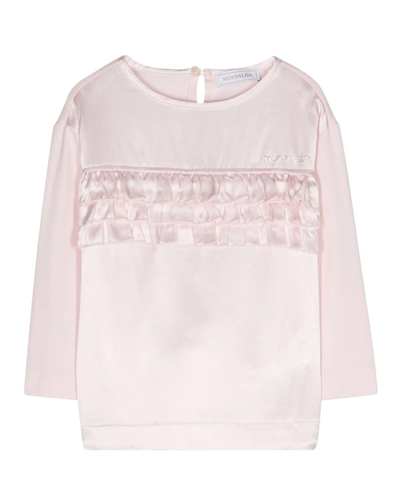 Monnalisa T-shirt in tessuto satinato a maniche lunghe 17D602