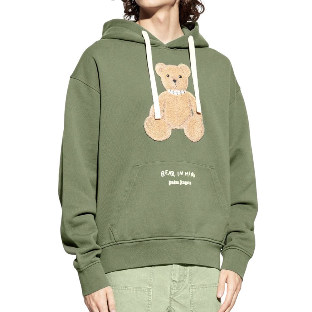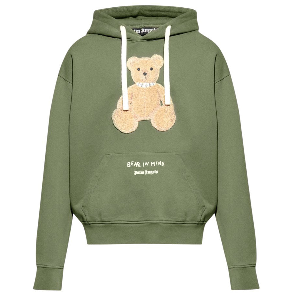 Palm Angels Felpa verde con cappuccio e Bear On My Mind PMBB17DF25FLE0045860