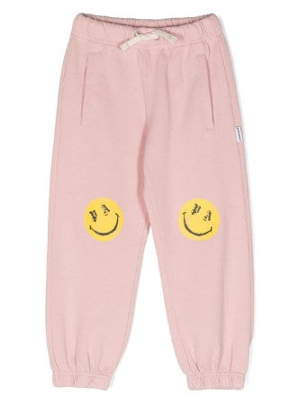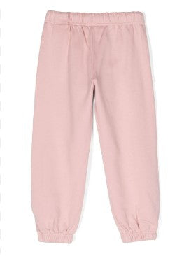 Jogger-style cotton sweatshirt trousers, elasticated waist and ankle, side welt pockets, contrasting print on the front.