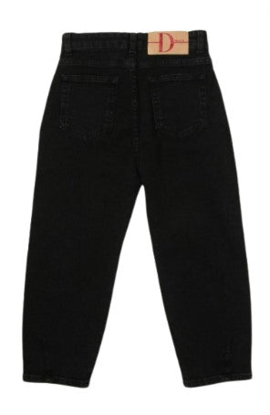 Cotton denim jeans, mom fit model. Front closure with button and zip.