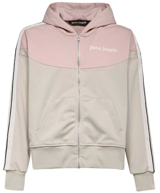 Palm Angels zip-up sweatshirt with two-tone hood, logo printed on the front, iconic stripe on the sleeve.