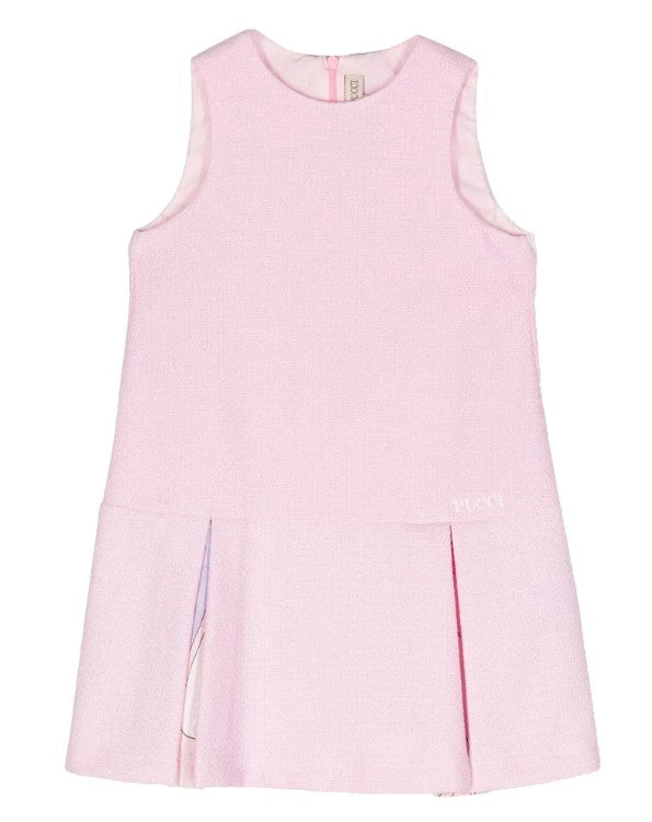 Crew neck dress, embroidered logo on the front, back zip fastening.