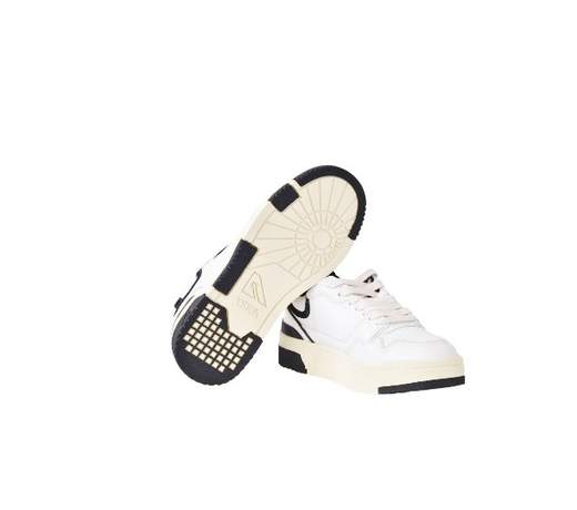 "CLC" AUTRY SNEAKERS, IN WHITE LEATHER, CONTRASTING INSERTS, ROUND TOE, LACE-UP CLOSURE, LOGO LABEL ON THE TONGUE, BLUE LOGO PRINT ON THE SIDE, CREAM RUBBER SOLE.