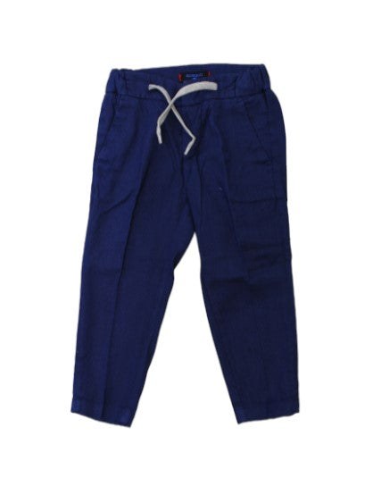 Classic trousers, front zip and hook fastening, drawstring waist, American pocket, pocket with buttons on the back.