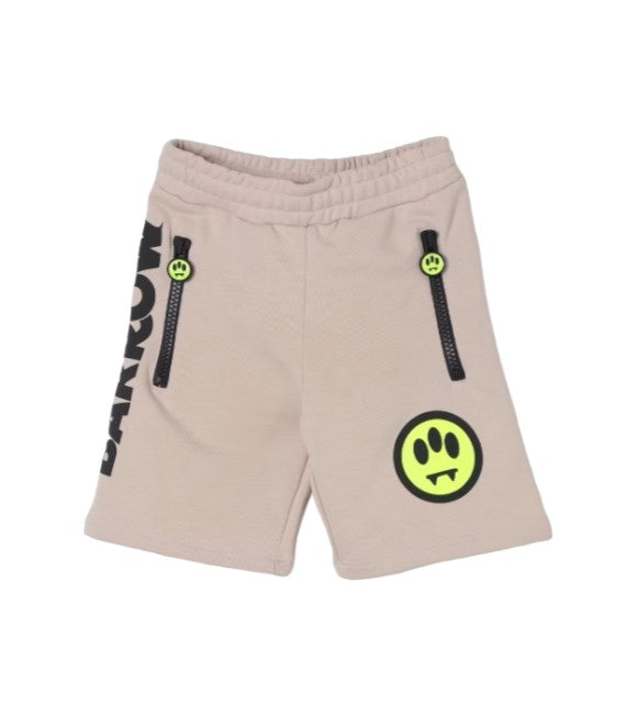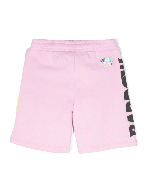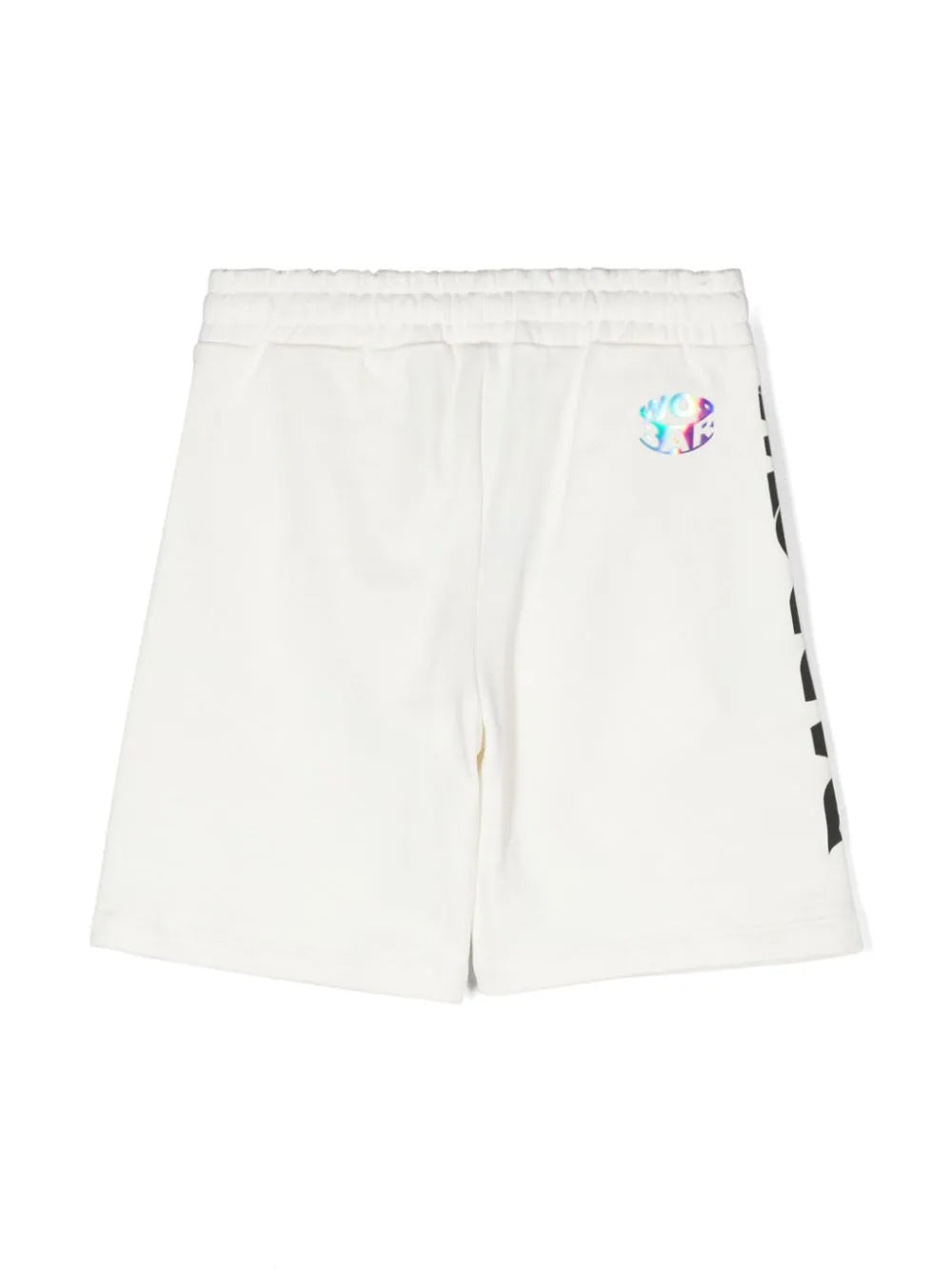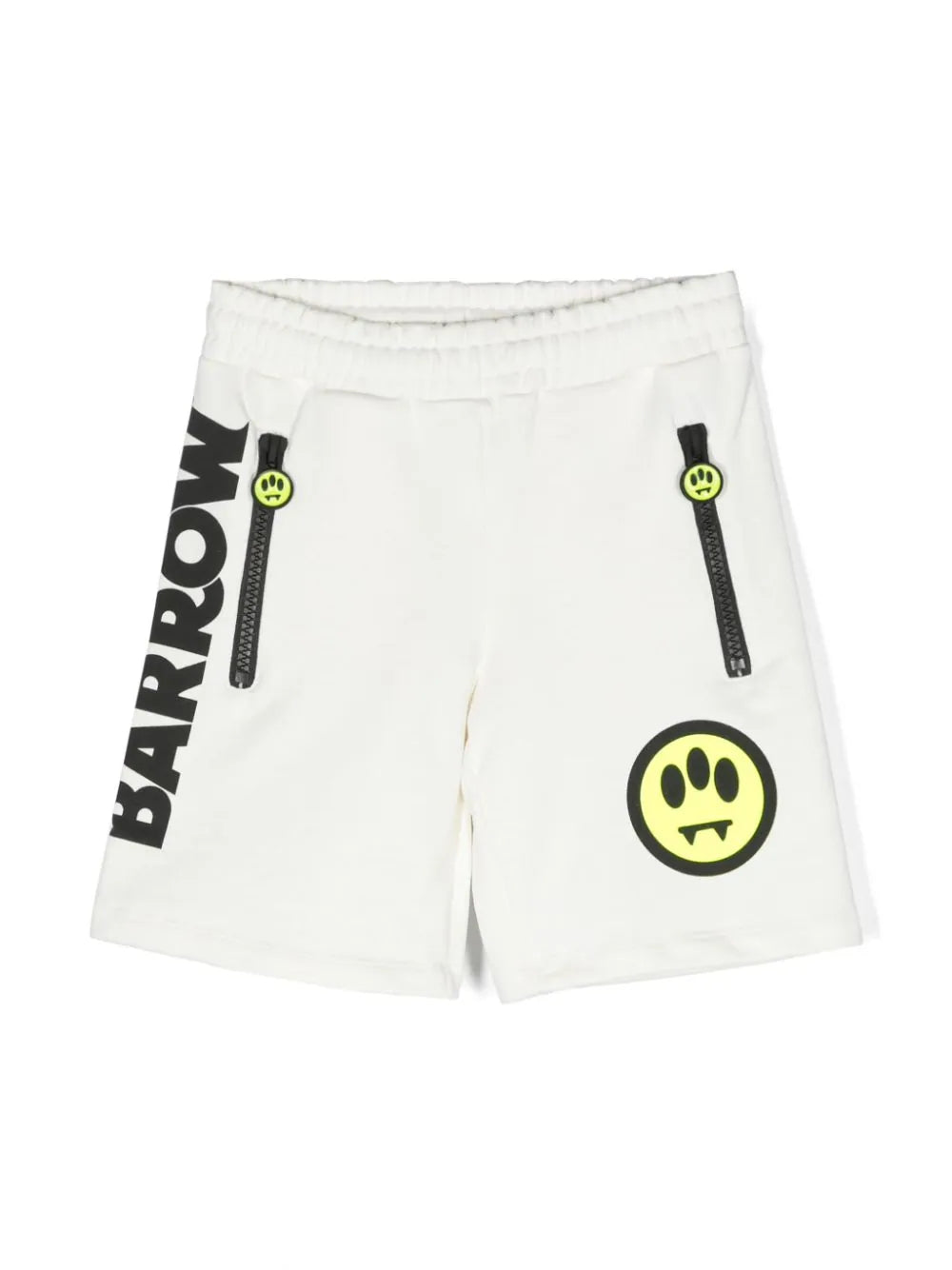 Bermuda shorts with elastic waist, zipped welt pocket, symbol printed on the front.
