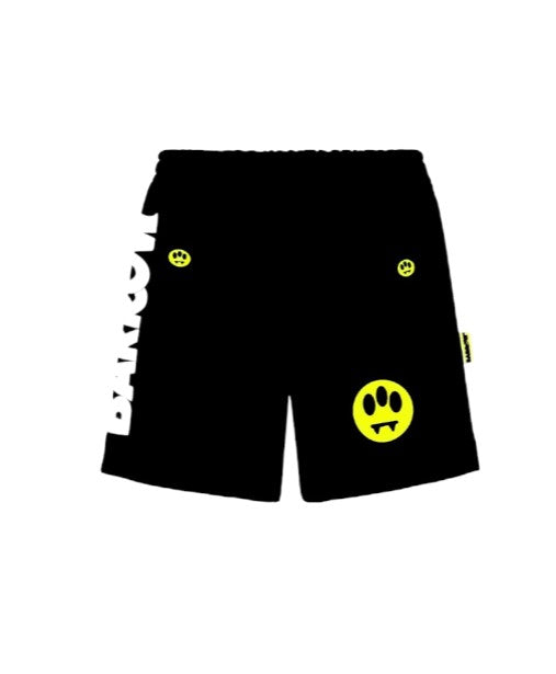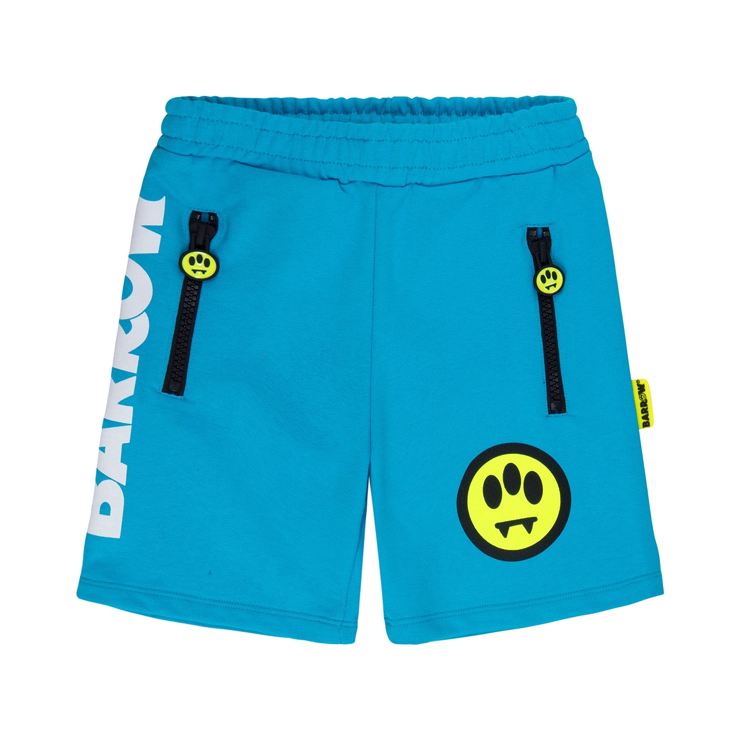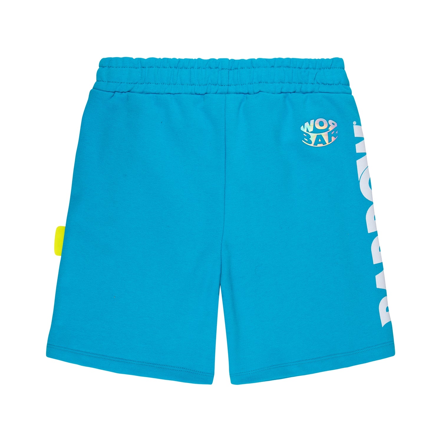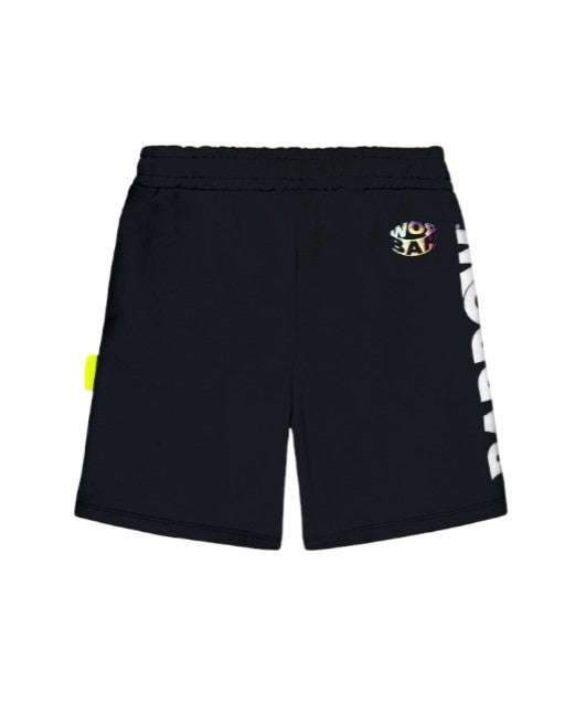 Bermuda shorts with elastic waist, zipped welt pocket, symbol printed on the front.