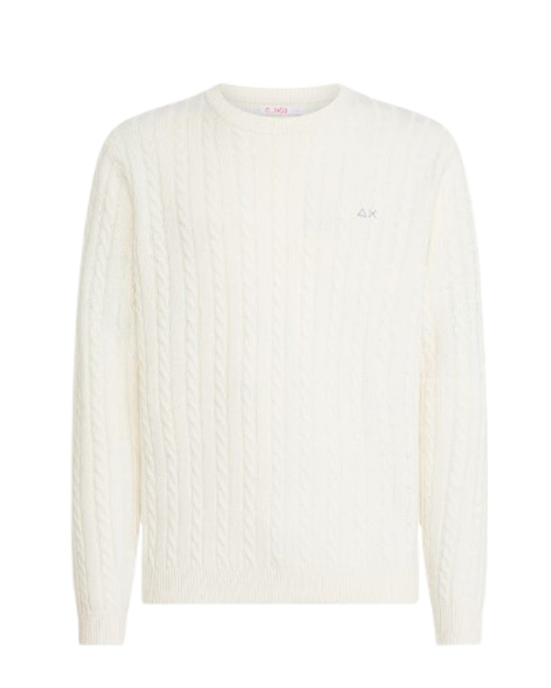 The Sun68 Girocollo K44355 sweater is made of soft wool with cable knit for an elegant and warm look. With long sleeves and ribbed edges, it also features the embroidered logo on the chest. Composed of a blend of wool, viscose, polyamide and cashmere for ultra-soft comfort.