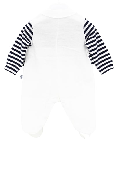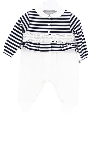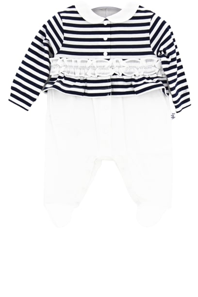 The Owl onesie with striped pattern and ruffled band.