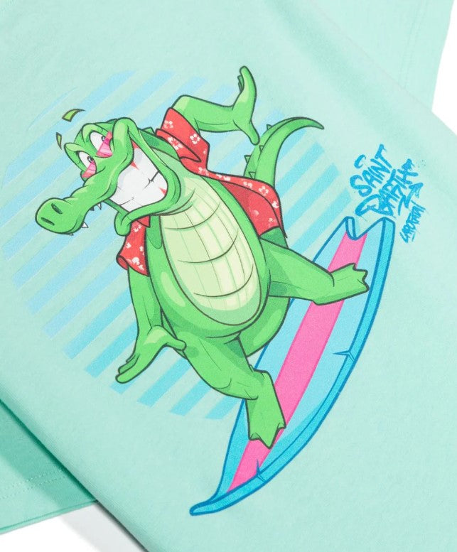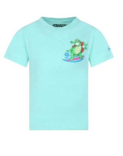 Crewneck, short-sleeved cotton T-shirt for kids. Crocco Surf print and logo on the chest, MC2 Saint Barth embroidery on the left sleeve.
