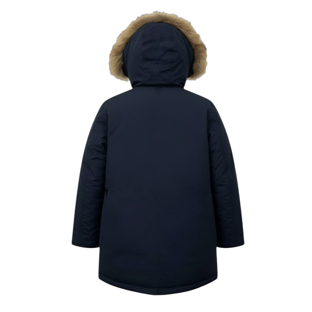 Arctic Parka realizzato in tessuto Ramar Cloth idrorepellente e resistente al vento. Presenta ampio cappuccio fisso con bordo in pelliccia di murmasky, chiusura frontale con zip e bottoni, maniche lunghe con polsi a coste, due tasche scaldamani e due tasche con patta applicate sul davanti.